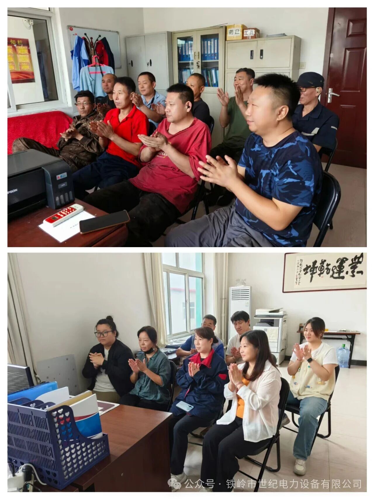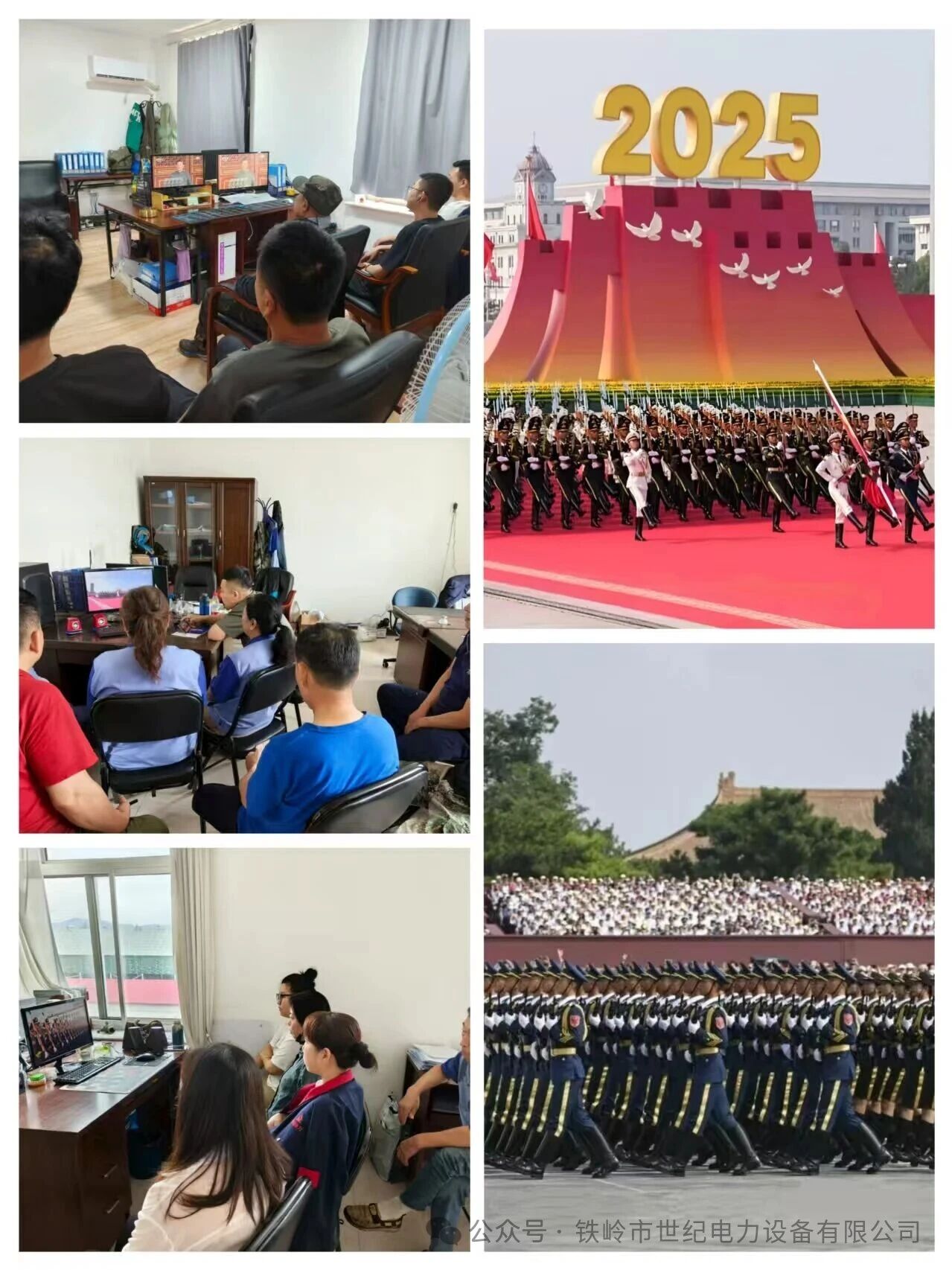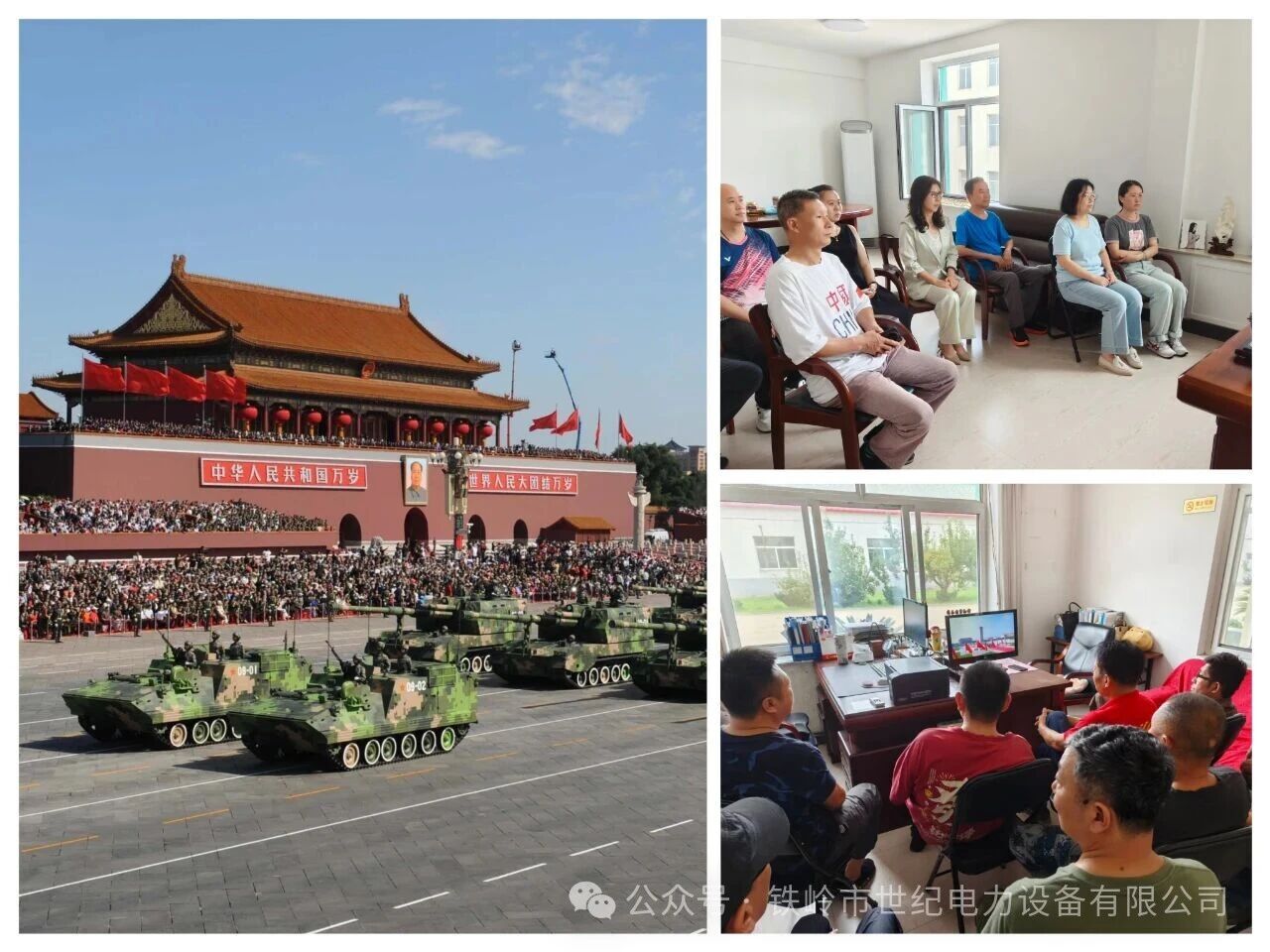 9月3日上午,纪念中国人民抗日战争暨世界反法西斯战争胜利80周年阅兵盛典启幕,铁岭市世纪电力设备有限公司全体员工以集中观看的方式,同步见证庄严时刻,用集体行动诠释团队凝聚力。