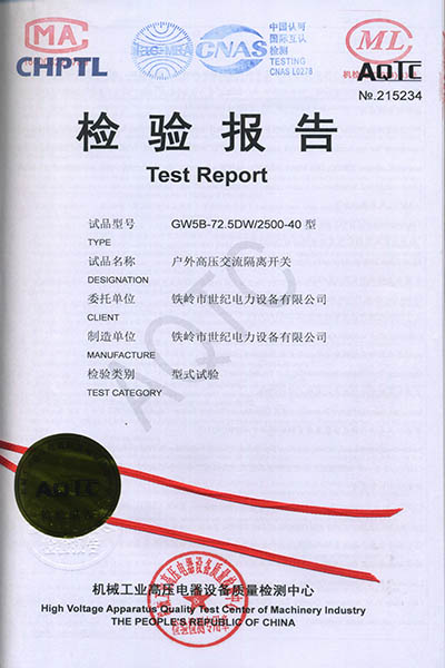 户外高压交流隔离开关检验报告